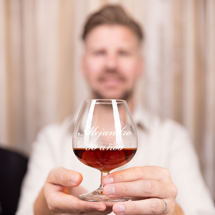 ¿Qué podría ser un mejor regalo para un amante del coñac que una copa grabada, acompañada quizá de una botella de su coñac favorito? El grabado es permanente y no se desgasta ni se desvanece con el tiempo.