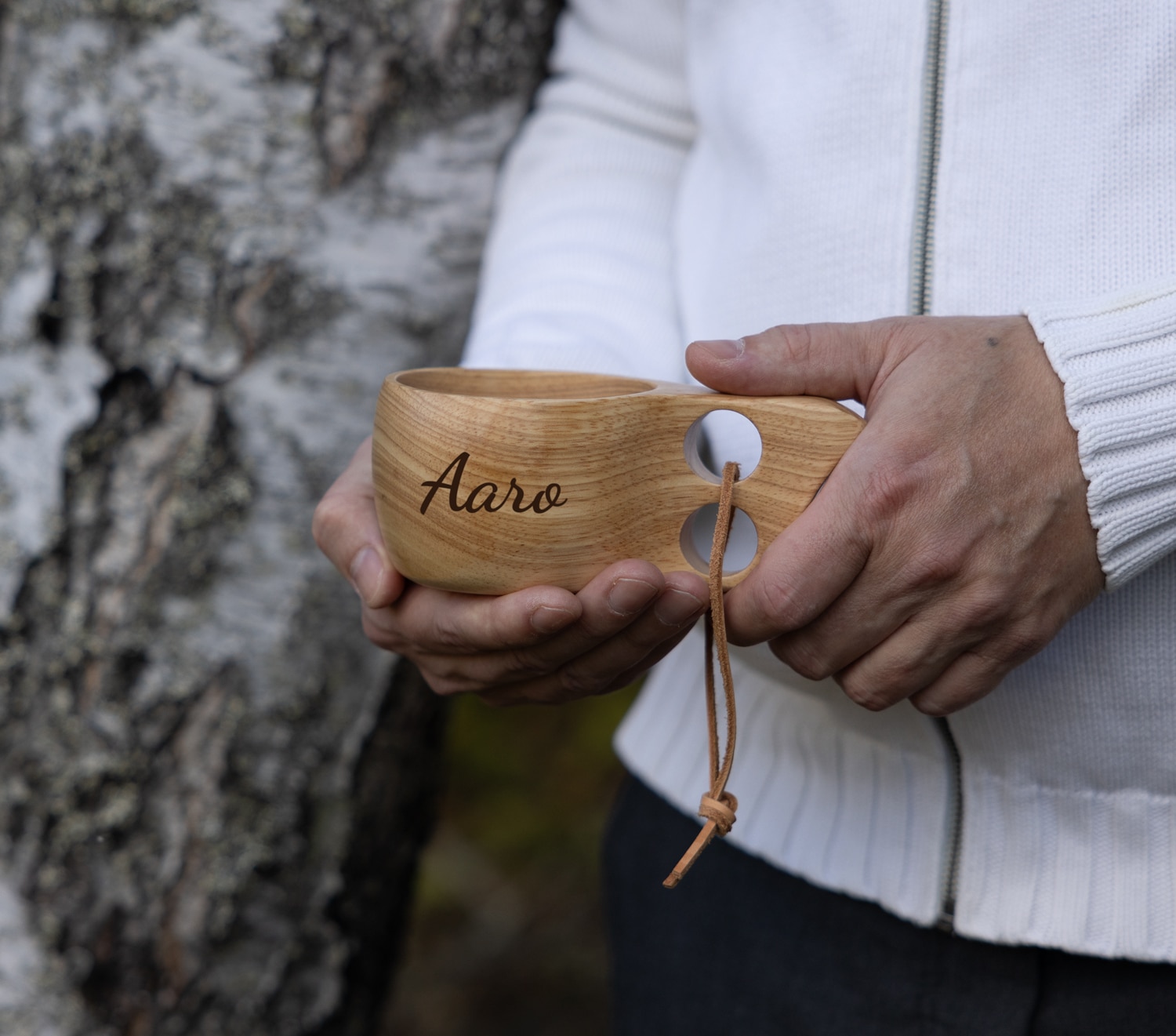 Kauniista kaksisormisesta kuksasta on helppo nauttia kahvia, teetä tai muuta mieleistä juotavaa. Puinen kuksa on myös upea koriste-esine ja siitä jää ihana muisto pitkäksi aikaa, sillä kaiverrus on ikuinen eikä se kulu tai haalistu.