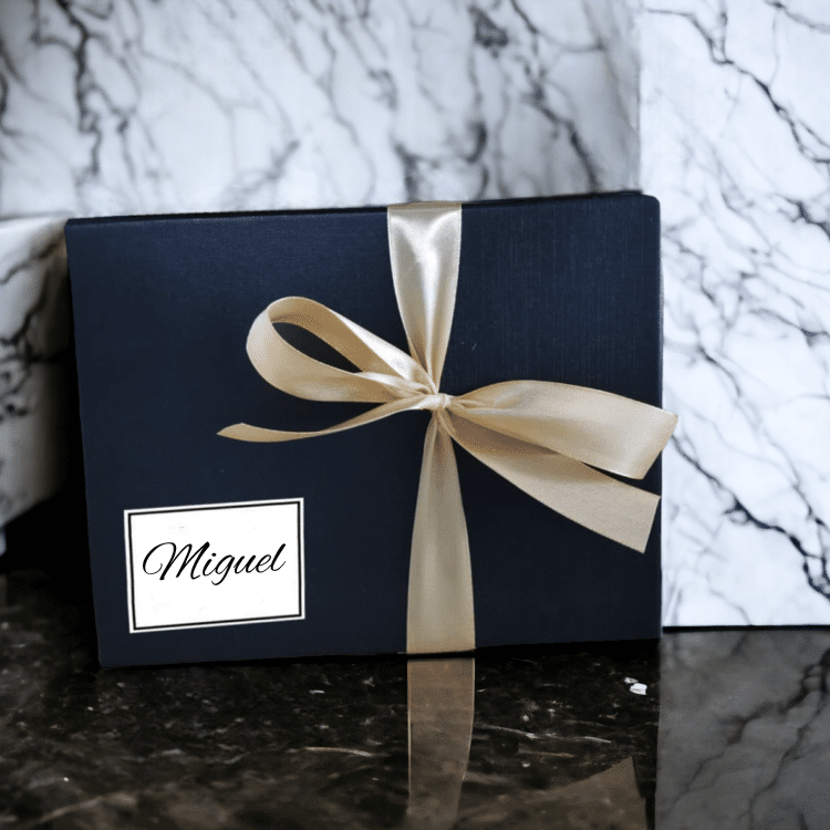 Cada petaca grabada se entrega en una elegante caja de regalo negra, lista para ser obsequiada. Si lo deseas, puedes personalizar aún más el paquete con una etiqueta con el texto que elijas.