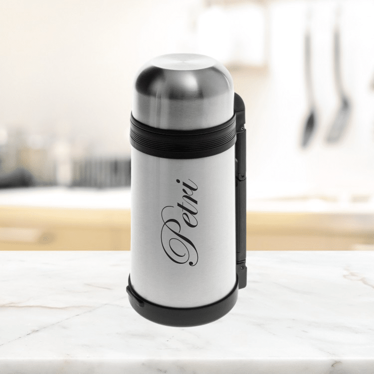 Reilun kokoinen ruokatermos on mitä loistavin ja käytännöllisin lahjaidea. Termos on valmistettu laadukkaasta ruostumattomasta teräksestä, joka viimeistellään omalla kaiverrustekstillä. Laadukas ruokatermos kuuluu jokaisen retkeilijän perusvarusteisiin. Ruokatermoksen avulla valmiin, lämpimän ruoan nauttiminen onnistuu hyvin retkeilyn lomassa. Ruokatermos on myös käytännöllinen arkena ruoan kuljettamiseen lämpimänä myös vaikkapa töihin tai harrastuksiin. Huom. You Name It varaa oikeuden pieniin muutoksiin, että tekstikaiverruksesta saadaan mahdollisimman samankaltainen kuin kuvassa.