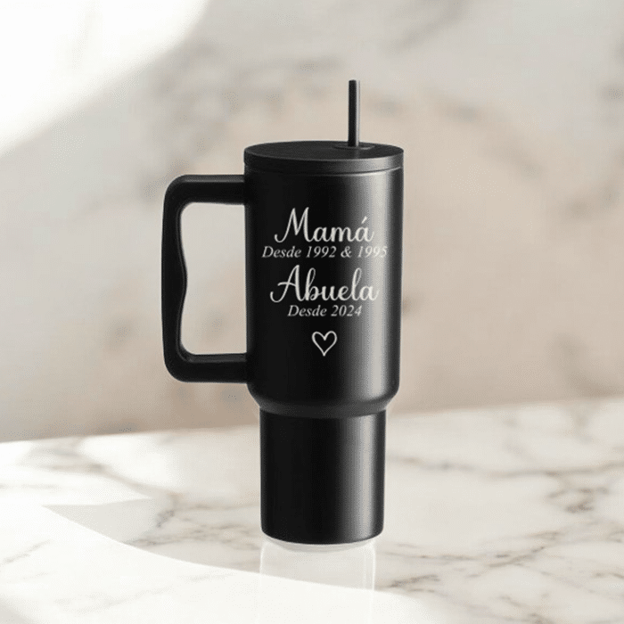 Un térmico tipo tumbler grabado con texto personalizado es el regalo perfecto para mamá y abuela, ideal para mantener las bebidas frías o calientes durante horas. Perfecto para el trabajo, el gimnasio o los paseos, este vaso combina estilo, funcionalidad y un toque personal con tu propio grabado.